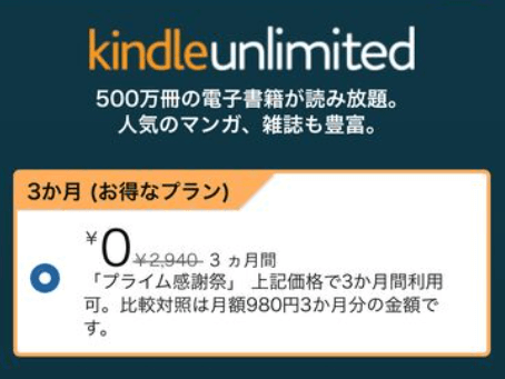 現在「Kindle Unlimited」では、プライム感謝祭キャンペーンが開催中!
